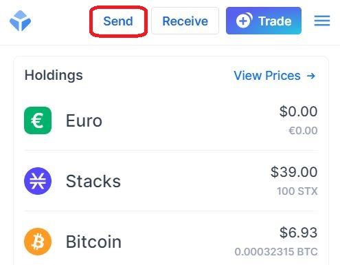 In our example we are using Blockchain to show you how it's done. The steps should be the same for almost every Blockchain provider. Once logged into your e-wallet navigate to the area to send your coins.