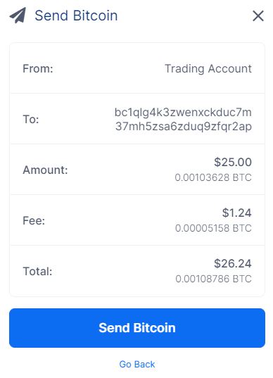 If you want to use the description field, we would advise refraining from using any gaming-related terms in the comment field. You can initiate the Bitcoin transfer with or without network fees.