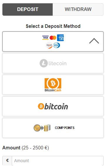 To make your Bitcoin deposit, it is crucial that you are logged into your Slots Capital account. Access the cashier to find the available deposit methods in the drop down menu.