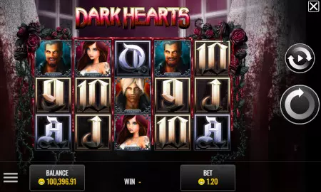 The design of this original slot machine game is all about keeping a medieval look and feel. Roses, a crucifix, a chalice, the Dark hearts icon, an ancient looking key and a set of playing card symbols, from Nine, Ten, Jack, Queen, King, and Ace, are just some of the images that embellish the reels of this epic new game. Land 3 or more of the key icons to trigger the special Player´s Choice Chamber feature where you must pick between the three main characters to collect Free Spins with massive multipliers.