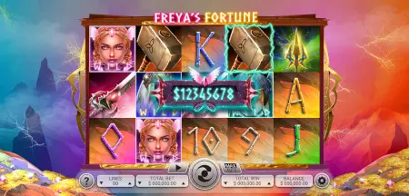 The theme of Freya's Fortune is Norse Mythology. You will be taken to a world where you'll see and hear cracking and rumbling sounds with thunder going on, as Thor restlessly beats his famous hammer. There are vivid colors in the game, and great graphics.