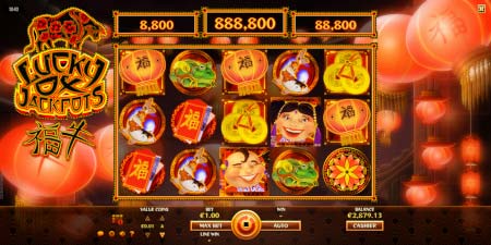The Lucky Ox Jackpots slot features an all ways pays layout, so you always have 243 chances to win every round. The symbols include Chinese-themed imagery, such as three gold coins tied together with red ribbon, a well-known symbol of luck in Chinese culture.