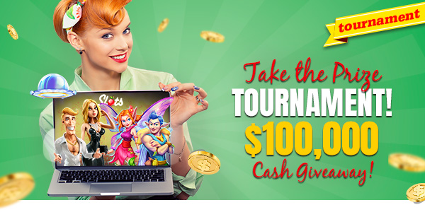 Our promotion will feature 10 daily Take the PrizeTM cash drops, a $100,000 prize pool, and 10 tournaments every day across more than 50 slots and minigames.
