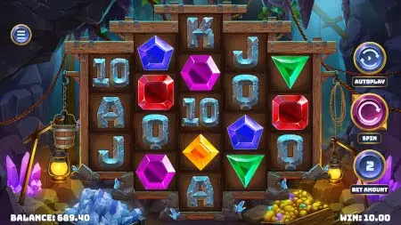 The five reels themselves look like a gem too. The diamond-shaped game is structured as 3-4-5-4-3, which is a unique reel array that you don't see every day. But on Wild Diamond Miner, you do strike gold every day!