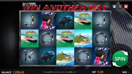 The symbols on Win Another Day are stunning. Beyond the TWO DOUBLE HIGH WILDS that can create winning combinations, the photorealistic symbols feature Max Cash on his private island, riding in his mini-submarine, and navigating via speedboat. There's even one with him in the sights of a sniper…